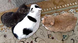 てつの事情。相変わらず・・てつは怖い。 洗面台からへっぴり腰。 さすけは起床時間の2/3は龍う太の腰巾着。そのうちの1/4はさかって背中を喰っているし。離れていても龍う太がどこかで何か云うとすっ飛んでいくし、いつもいつも半身下がった位置でぴったりくっついて走っている。寝ているときは龍う太の寝籠の前で見張っていたり・・。 残りの時間は1匹でスト〜ブの前でごろごろしているか、こちゃそっくりに走り回っている。何故走っているのかは全く不明で不審。 朝から近所の友人と馬喰横山問屋街の店を2軒、コストコ・カルフ〜ル、南砂ドイトとジャスコの旅。捜し物はなかった。 もう貧乏なので遠出買い物はしばし出来ないな。 昼・夕方コストコ買い食い、夜・炊き込み飯とチキンとブロコリとおつまみセット(ゴルゴンゾ〜ラとドライトマトとアンチョビオリ〜ヴ)。 【菅又の一言】・・・《毎朝だい猫のひ〜ひ〜目覚まし。》 夕刊・・災害時の被災者のパスポ〜ト再発行代はこれから免除するって・・。今更何を。で、首相官邸には美術品を今の3倍飾れと・・。馬鹿丸出し日本。 |