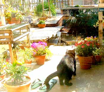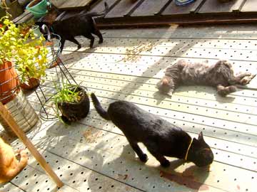 なかなかいい音のするクリスタルとアルミの飾り物。龍う太が伸び上がって鳴らす。 登り棒の上がり降りでも鳴る。楽しい嬉しい。 菅又は近所の大棚バラシと菅又ママの仕事・南砂ドイトに買い物にも運転手役で出動。田崎は今日の役者友人に差し入れと明日のお客用ケェキ作りと掃除。差し入れは・・昨日は五目おこわ、今日は赤飯とバナナケェキ。 夜は・・近所の友人を誘って高円寺に夕飯と本屋。その後深夜までここでお茶時間。TV見ながらわさわさつっこみを入れながら騒いでいた。 今日はかなり寒かった。田崎が外に出て植木の世話をしていても猫達は来ない。来てもすぐ室内に、すぐスト〜ヴの前に。あげくに夜でもないのに寝室の寝場所でぬくっていた。最近は昼間は猫座布団の電気を切ってしまうのだが、今日は許す。 3月飾りにパンツ復活しようと思ったら、見つからなく、数日前より家中を捜索。まっ たく・・あらゆる物が行方不明。今年は整頓と使ってしまうのと・・捨てるさ。毎日《今日死んだら阿呆だぞ》と困惑。この資料と素材のため込み様は尋常じゃないぞ。もう芝居衣装や舞台装置は作らないので廃棄だ廃棄!!と、ケチらずに服をがしがし作るか、柄が好きと云って収集家として生きるか決めよう。 嘘、収集家は嘘。実はサイズが半端。つまりベッドカヴァ〜なぞを簡易パッチワ〜クで作ろうっと。 ああ〜画像が縦長だと・・・一杯書かないといかんが。 昼・赤飯味見、夜・高円寺げんこつでラ〜メン。 【菅又の一言】・・・《睡魔が。》 |