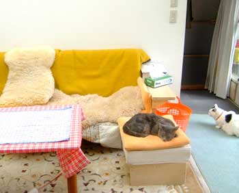 でも概して猫達は寝ていた。雨だから。ざっくざっくと進んで・・・当然ジムは挫折。菅又はシャンソンのお店用作り物、明日のグル〜プレッスンに間に合うようにということで多忙。池袋まで雨の中の徒歩30分は時間的に辛い。 弥生会計入力も検証も済んで、今からプリントアウト。税務署提出用決算書類を書いて、エクセルで添付書類を作ってプリント。完了。のはず。 今からがんばるか、明日がんばるか、ちょっと悩む。でも午前中はあまり仕事ははかどらず・猫も元気だし・今晩中がいいのだが。電気代とガス代がもったいない? 実は昨日・・電話と玄関先インタ〜フォン鳴り続け、店は開きますかって。・・・。 いや・・。とりあえず冬場は開きませんというと、いつから・・と・・つっこまれるのだ。あははははははh。 経理は税務署に持っていくのを入れてもあと半日で終わる。仕事も溜まってきている。友人も来る。春だ春だ春だ。わさわさ。 昼・パンセット・夜・インスタントカレェセット。菅又さnいつもありがとう。すまぬ。 【菅又の一言】・・・《不機嫌なやっちの小さいキック。実はすごく痛い。》 隔離部屋・菅又のソファに一緒に座って騒ぎまくっている。 |