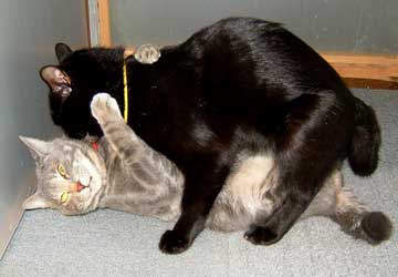 ぶんたろ〜とは仲良し猿。ぶんたろ〜がちょっかいを出したので、首輪を引っかけている。 この後、ぶんたろ〜は顔がべち。ゴムの首輪でべち。 よく、ぶんたろ〜がさすけを追いかけている。 ぶんたろ〜はやっちとも仲良しで毎日やっち追いかけ。みんなと仲良し。 ・・それに比べて・・さすけは困った輩。毎日毎日こちゃいじめが酷い。荻窪の獣医科病院の改装打ち合わせがてら、ガキ2匹去勢のための血液検査に連れて行った。昔から使っている壊れ掛けた籐の猫籠に2匹入れて車で行った。大人しく行った。客をいやがってどたばた走り回るさすけはどうなるかと心配したが、大人しかった。黙ってじ〜〜〜〜〜〜と車に乗って、獣医さんに抱かれても大人しい。 帰りの車の中では奥の方で《いじっ》としていて返事もしなかったが。 田崎大事黒猫どnが猫伝染性腹膜炎を発症してから勉強。血液検査で数値が高かったら去勢しないという手があったのだ・・。無知だった。手術等のストレスで発症の可能性があったとのことで。 ま〜先はどうなれ、とりあえず検査。これの検査は時間もかかり高いけど。人の安心代。