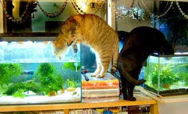 だんだん接近。今日は曇り時々雨状態。猫達も地味。 ちぇっ、自転車試乗会は中止。 水草・ウィロ〜モスが異常に増えて難儀していた熱帯魚水槽の大掃除。 何でうちの植物はこんなに増殖しまくるのだ。大中2個ともものすごい水草。 例によってシ〜ガルフォ〜の水は全取っ替えしても大丈夫。 昨日に引き続き低気圧か・・頭痛がするぞ。 昼・栗おこわと鶏からあげと烏賊ホタテハンバ〜グ、夜・かき揚げそばと菜花お浸し。 【菅又の一言】・・・《ねちゃねちゃねちゃねちゃ。》 だいの飯の喰い方。気持ちが悪くなる・・。皿にのしていく。 |