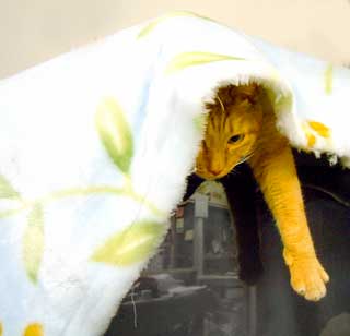 TVの上でぶんぶん。 猫用の安っぽいアクリル毛布。2枚重ねじゃないアクリル毛布が良いのだが、下品じゃないのを探すのは大変。安くて小さいのは柄が・・キティとかプ〜とかなんかそんな柄。先日象牙色のすごくいいのを買ったのだが(高かった)、西川のちゃんとした厚手のだったので田崎が自分の物にしてしまった。猫には薄い柄の入ったちょっと薄い安物。アクリルの1枚物は洗濯も楽すぐ乾く。猫達も兎もふわふわした毛布が好き。 三鷹台に一仕事。田崎は階段のデザインサイズを指示して、車で本を読んで、階段が出来たらテラコッタタイル並べのデザインとカット指示。ここで昼過ぎだったので、神戸屋に行って昼の買い食い、田崎はそのまま荻窪から家に帰っちまっただ。 日曜に友人宅に行ってファンヒ〜タ〜に負けたらしく、頭痛とごほ。 石油にもエアコンにも負けるので、合体ファンヒ〜タには完全に負け負け。ふn。 夜・・最近はやっちが田崎脚にのしかかって寝る。反対側にはこちゃ重し。両足が全く動かせず、ものすごく睡眠にまずい。朝起きた段階で疲れている。また冬の猫対策が。 昼・神戸屋サンドウィッチ買い食い、夜・普通にタイ米とグリ〜ンカレェとイラン牛肉豆シチュと山盛りサラダ・ちなみに今日のサラダはグリ〜ンリ〜フ・スライス玉葱・とうもろこし・缶詰チキン・千切り人参・シ〜ザ〜ドレッシングにチ〜ズ掛け。 【菅又の一言】・・・《寒イボ(さぶいぼ)立ったぜ〜。》さすがに今日の野外は寒かったそうだ。でもホカロン。 |