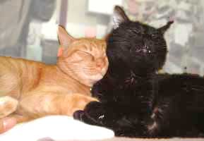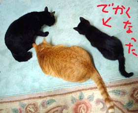 つ・爪研ぎ。 だいたいは巨大登り棒でみんな爪を研ぐ。絨毯はすぐぼろぼろで、しょっちゅう張り替え。冬終わり頃に安い絨毯をいっぱい買っておく。絨毯大臣・・。敷いてある絨毯でも爪研ぎ・・。 でも柱やら家具やらではしないのでいいさ。 今日の写真は親子写真ではないぞ。一見仲良し親子風なのが、けっこういや。やっとてつは黒い子供に慣れてきた。黒い物が怖いてつ。 先週頼んである硝子がまだ来ない・・・。あとは硝子を乗せるだけなのに。明日到着して、営業の前に設置できることを願う。 土曜から3階準備。階段から作るので、パソコン置き場を移動ってとこから始まる・・。部屋が明るくなったので、どこに置こうか頭が痛い。暗いところは寒いってわけだしさ。 【菅又の一言】・・・《明るいところははねて見にくいぞ、さあどうする。そういえばTVもすごく見にくい。》