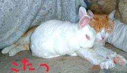 天気が良かった、みんな嬉しかった。![]() 洗濯がしがし、山ほど干した、明日も天気じゃないと大変じゃ。 こたつの中も掃除。掃除中に入り込んでてつとぶがぺたぺた。 《最新》に干し芋載せた。《最新》は何のペエジやら近頃は不審である。商品は作ってもなんだかあまりに頼りないので、・・・意味無いな。とりあえず《最新》に最新動画も載せた。とりあえず、だぜぇ〜。 猫の力関係は難しい。 茶色い兄弟はいぢめられやすい。てつとこちゃ。・・・。 両方とも、だいとどn(長男兄弟)に追いかけられる。 だいは、てつもこちゃも同じように追いかけて脚を喰う、首を喰う。 どnはてつと囓りっこ、こちゃの事はしつこくしつこく鳴かせる。こちゃは小さくなって端に隠れようとするのに、叩いていぢわる。 ぎゃ〜ぁぎゃ〜ぁ騒いで逃げるから、ますます追いかけられるのだと思うぞ。 でも食卓こたつの中ではみんな仲良し。てつ・どん・こちゃ・ぶんたろ〜・ぶで舐めっこ。どの組み合わせでも仲良し。いつも5匹(猫4+兎1)一緒。 猫の母は見ていてしあわせ。 時々職人の昼寝時、一緒にこたつに潜り込んで寝るのさ、体中猫だらだらけ、べたべたくっついてきて、腕枕して舐めてくれて、しあわせ。 昼飯・いつものステ〜キ丼をチキンライス味・半熟卵乗せ。 夕飯・貧乏シチュ〜(豚のクリ〜ムシチュ〜+南瓜)・山盛り各種パン・サラダ |