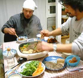 うだぐだ、うだぐだう、だうだうだ。![]() ・・・・・。 くたくた。くにゃうにゃ。 ・・・・・。 ふnふnふ〜〜〜n。 夕方鯖ちゃんちにケェキ持って、珈琲に行った。 夜、鯖ちゃんと男友達が来て、一緒に飯喰った。 夢の話と粕汁の話をした。 がぁぁぁぁぁ〜〜、またまた腹一杯。いやぁ〜〜〜。 って、また甘酒ものんぢまっただぁ〜〜。 今日も暖かかった、午前中はパジャマ代わりの、半袖Tシャツと短パンの半分裸の田崎だった。 ぶんたろ〜は元気で元気で元気で、みんなにばほばほして困らせていた。 【菅又の一言】・・・《腹が重い。》