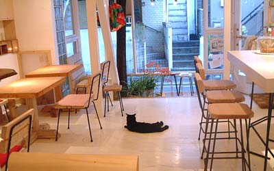 店の真ん中でどnが睥睨。 疲れた。毎晩眠りを邪魔されるせいだ。 朝からゆるゆるとケェキを作り、料理を作り、平和。 でも2階は32度くらいで、身体はその温度でなれているのだが、1階はお客人のためにク〜ラ〜。 これに負ける。 最近猫達は開店から店にいる。 ぶんたろ〜は日に日に慣れてきているし、だいは脱走目的、てつはいつもながら。今日はどnが何やら遊びまくっていた。やっちは棚にはまって寝ていたし。 夜営業終了間際(というか、終了後、みんなで騒いでいたとき)、消防車の近い音。又や堂の前を戸塚警察に向かった坂の突き当たりに赤いくるくるが見える。 常連の方々と見に行ったさ、食後の散歩がてら。戸塚警察向かいの古い大きな・又や堂が一昨年だかに2軒改装した・マンションの、真ん中くらいの部屋で、ぼやらしかった。 昨日は角の八百屋さんに、救急車来ていたし、まったく馬場は不穏。 疲れて右の肩が痛くて痛くて・五十肩っす・ピップが利かなくなってきたので、寝る。 昼・まかない飯、夜・定食セットとケェキ・・・おうっぷぅ〜。今日の飯はここ 【菅又の一言】・・・《ぶんたろ〜はお客さんが怖い。でもボ〜ルを投げてくれる人はいい人。》 |