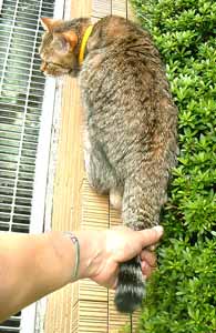 頭でっかちはシ〜トベルト。 暑い日に買い物から車に戻ると、だい猫は運転席とか助手席で寝ている、だらだら。どいてくれないので、抱っこ。すぐ離したり黙って抱いていると、菅又に甘ったれたれになるので、しばらく確保しておく。『待って、ちょっと待って』などといって忙しそうにシ〜トベルトをかけたりしていると、じっとしている。でも毎回おかしい。し・尻尾が邪魔〜。食卓で書き物とかパソコンのキ〜ボ〜ド打っている時とか新聞読んでいる時とか洗濯物畳んでいる時、みんな尻尾をぱたぱたさせて邪魔をする。いつも邪魔〜と云われているのだ。てつ以外。てつは身体ごと邪魔〜。 午前中菅又は窓目隠しつけ。 午後、昨日頼まれたトイレの部材注文と、他の頼まれ仕事部材買い等等で高島屋ハンズ。他にはいけなかった。西口ヨドバシに行きたかった。又明日だ。 なんとかヴィデオ1本観た。ソファに夕飯直接置きながら。更新したらもう1本。ゆったりするためのヴィデオDVDなのに、義務と化してせわしなく面倒くさく疲れる。ったく〜。 昼・・・・・、夜・赤飯(先日家の分が無かったので、しこたま炊いた)、蛸刺身、明太子、う巻き、稲荷巻卵、水菜とトマトのシ〜ザ〜サラダ、ズッキ〜ニとえりんぎオリ〜ヴオイル炒め。 食い過ぎ胃が痛い。 【菅又の一言】・・・《今日もまた謎の消防車。》
