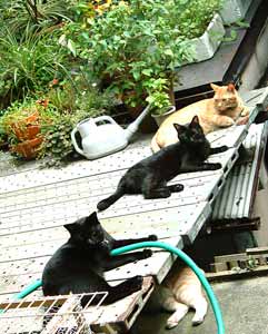 雄猫軍団勢揃い。なかなか壮観で嬉しい。 |