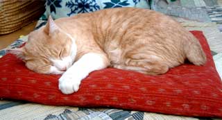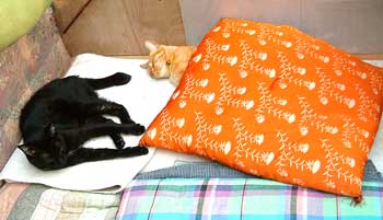 この暑いのに日干し中の座布団の下で昼寝こちゃ。 こちゃはいつでもどこでも潜り込む。暑くても平気・男らしい。寒いのは弱い・やっぱり男っぽい。 今日はもうだめである。 この数日就寝時間が遅い上に、起床時間が早い。 寝るときキュ〜ピコ〜ワアイってのと養命酒を飲む。朝ばっちり起きてすぐ仕事にかかれるのは良いのだが、夕方からへばる。 昼から頑張って夜中まで保つのと、朝から頑張って夕方から疲れまくっているのと、どっちがまだましか悩む。 店の準備のため8時からばたばた。朝飯(玄米飯と鱒子と刺身2切れと玄米茶)の5分と昼飯の15分と職人の昼寝15分以外、座っていない。