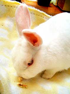 ぶ兎はアトピ〜子供用動物模様クッキ〜を喰う。 はぐはぐ。一度に親指半分くらいだけ。でもしつこい。小さく割っていると強引にぶんどっていく。 何故最近兎デジ画像が多いかというと・・。 1日家にいる田崎はちょっと猫達にうんざりしている。 起きているときは、他の猫のかかとやケツを喰いまくっているか、レバ〜くれ〜といいまくり・・だい。 てつは先日の脱走騒ぎ以来、『出たいでも怖いでも出たい』と騒ぎまくり鳴きまくりしつこいうるさい事この上もないぞ。 やっちはひたすら歩く脚元の先々で寝ころんで飯くれアピ〜ル、みんなの尻尾喰うし。 どnは食べないいらないばっか。あらゆる皿をひっくり返しまくっている。 こちゃがうろうろすると・・しっこかけしないかはらはら。 ぶんたろ〜は歩く先をちょろちょろ危険なのとボ〜ル投げ遊びに誘うのがしつこい。 おい猫ってこんなにしつこくないぞ。おまいら犬だ。 洗濯部屋を菅又が補修改装中なので、猫達が行かないよう見張りつつ、資料整理していた田崎。 昼・ふnふnボッテガ、夜・豚角煮と胡麻豆腐となんか。生活クラブの食品を試して色々食べているところさ。なかなか美味しい。 【菅又の一言】・・・《廃屋ほこりで鼻がずるずる。》